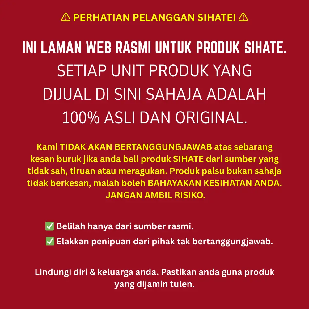 © Herbliss (M) Sdn. Bhd. Hak Cipta Terpelihara. Sihaté adalah cap dagangan yang dimiliki oleh Herbliss Sdn. Bhd. (1224032-K) di bawah Akta Hakcipta 1987.