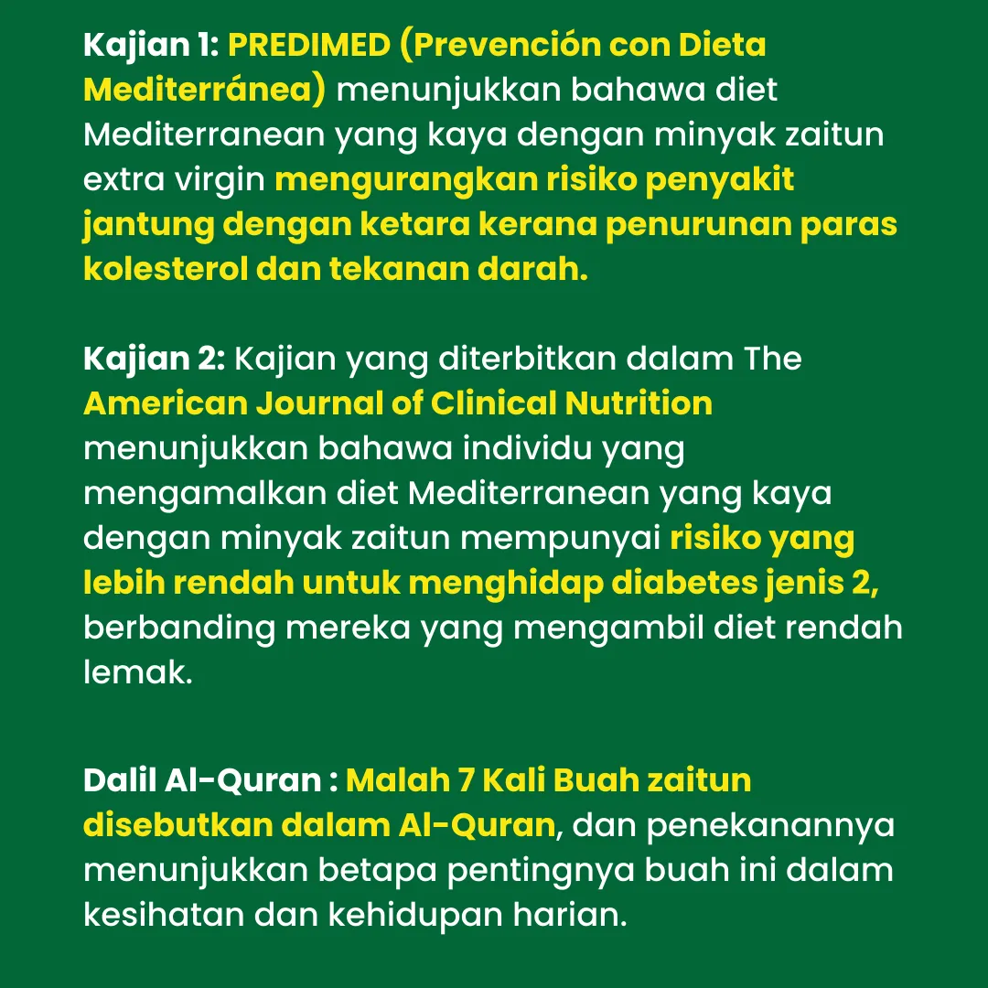Minyak zaitun bukan sahaja memenuhi keperluan sunnah, tetapi juga didukung oleh fakta saintifik yang kukuh. Ia membuktikan bahawa amalan Rasulullah SAW selaras dengan penemuan terkini untuk kebaikan kesihatan manusia.